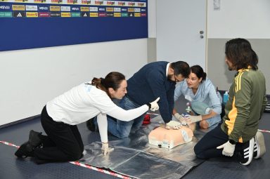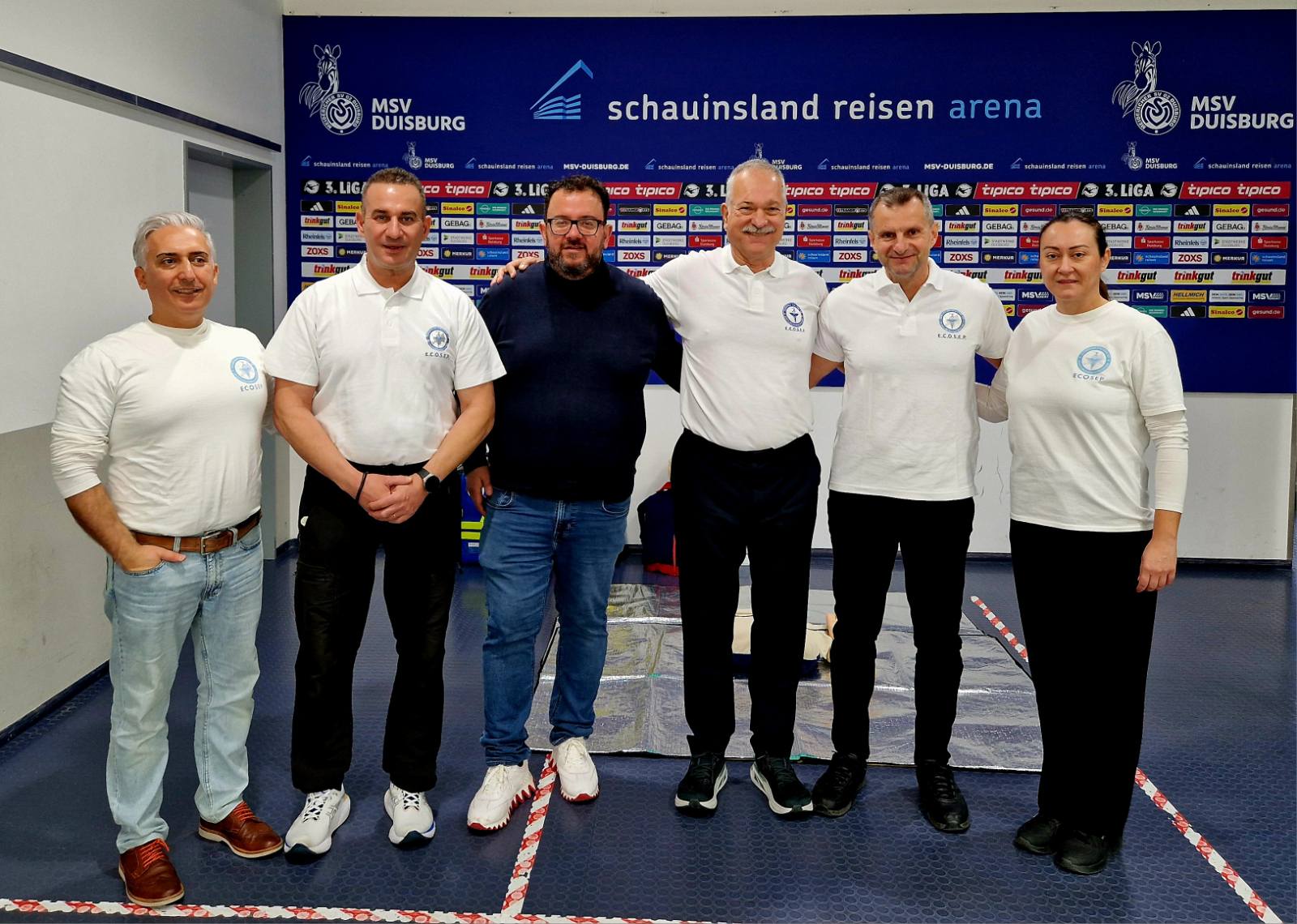 Η υπεύθυνη της First Aid National Διονυσία Γιαννούλη και οι επιστημονικοί μας σύμβουλοι Dr Νικόλαος Μαλλιαρόπουλος (Γενικός Γραμματέας του ECOSEP) και Νικόλαος Γκούρτσας (ECOSEP SOFTE Course Director) στο 9ο Παγκόσμιο Συνέδριο του Ευρωπαϊκού Κολλεγίου Αθλητιάτρων – ECOSEP, το οποίο πραγματοποιήθηκε στις 20-22 Νοεμβρίου 2025 στο Düsseldorf της Γερμανίας, σε συνεργασία με την Ευρωπαϊκή Ομοσπονδία Αθλητικής Οδοντιατρικής. Πραγματοποίησαν ομιλίες πάνω σε κρίσιμα θέματα της αθλητιατρικής και της αντιμετώπισης της καρδιακής ανακοπής στον αθλητικό χώρο ενώ ήταν και μεταξύ των βασικών εκπαιδευτών στο σεμινάριο Sports on the Field Trauma and Emergencies – SOFTE το οποίο πραγματοποιήθηκε ως pre-congress Course στην Duisburg Arena. Το συνέδριο σημείωσε μεγάλη επιτυχία χάρη στο εξαιρετικό επιστημονικό πρόγραμμα και το υψηλό επίπεδο των ομιλητών από όλον τον κόσμο!