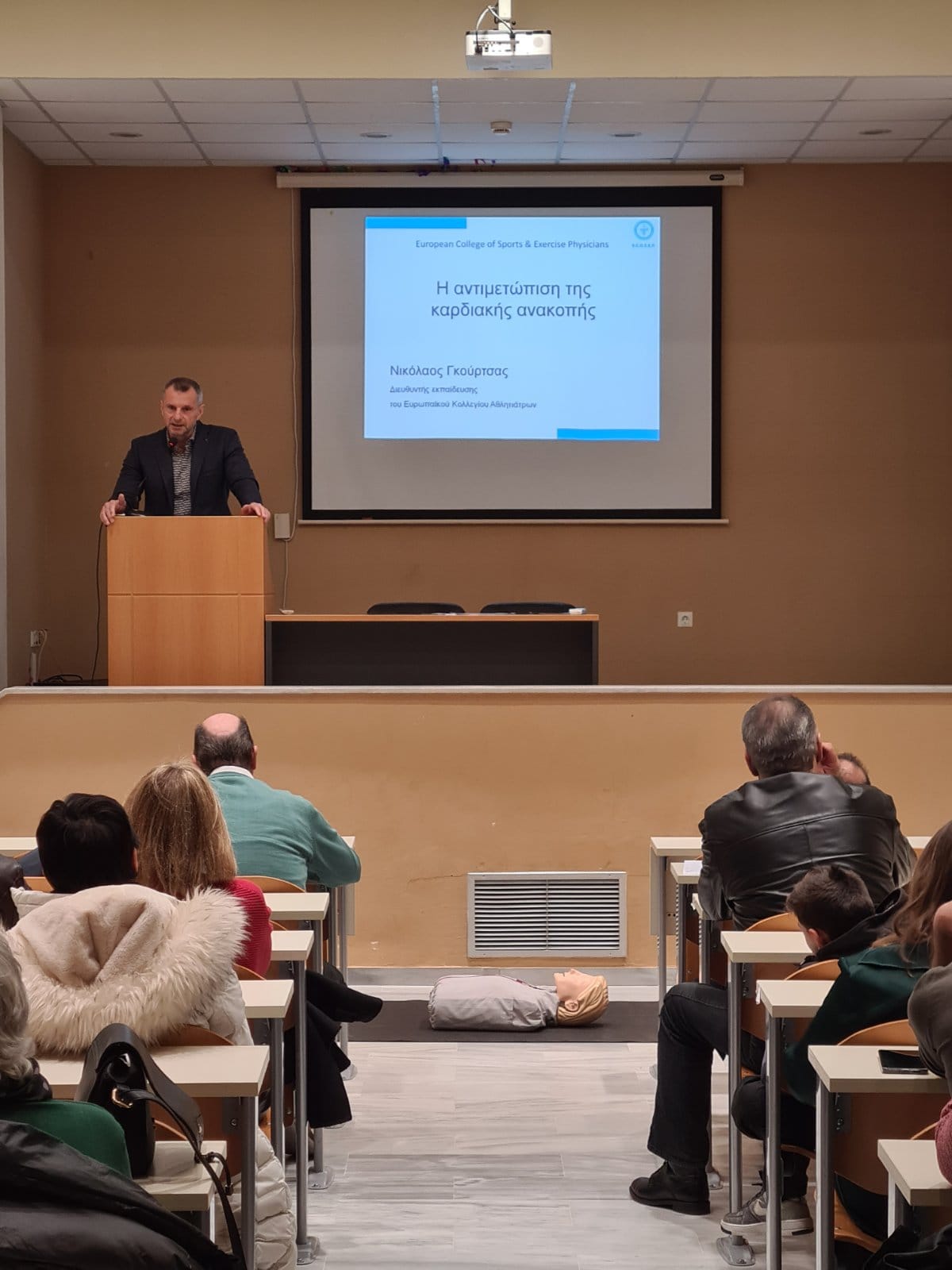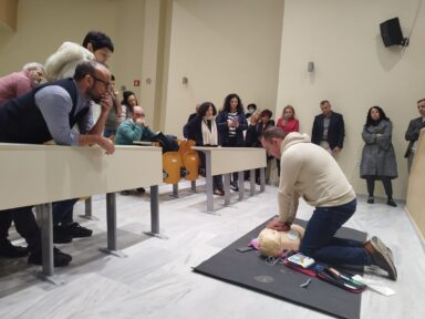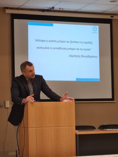 First Aid National Course Director Nikos Gourtsas and trainer Theofanis Papaefstratiou at the Conference on Organ and Bone Marrow Donation organized by the International University of Greece on December 16th & 17th 2023 in Serres.