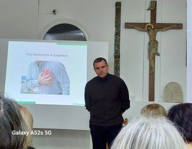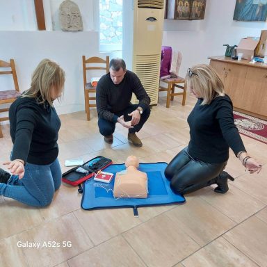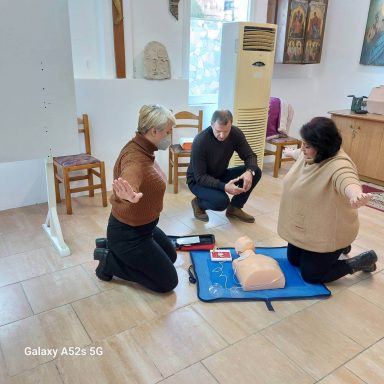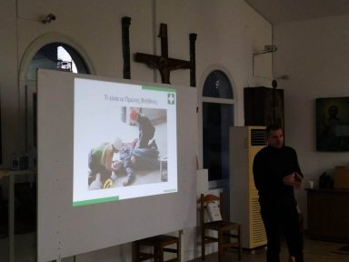 On Friday 10th February, in the event hall of the church of Nea Kerdylia – Serres, took place a First Aid  lecture for the residents of the village. The First Aid team has also been retrained as an automatic external defibrillator has now been installed in the Community office.