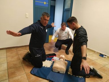 BLS/AED Course of the European Rescuscitation Council for the medical team of Panetolikos FC. Coach Jannis Anastasiou and his assistant Edrissa Sonko have also attended the course which was held on February 16th 2023 in Panetolikos training centre in Agrinio.