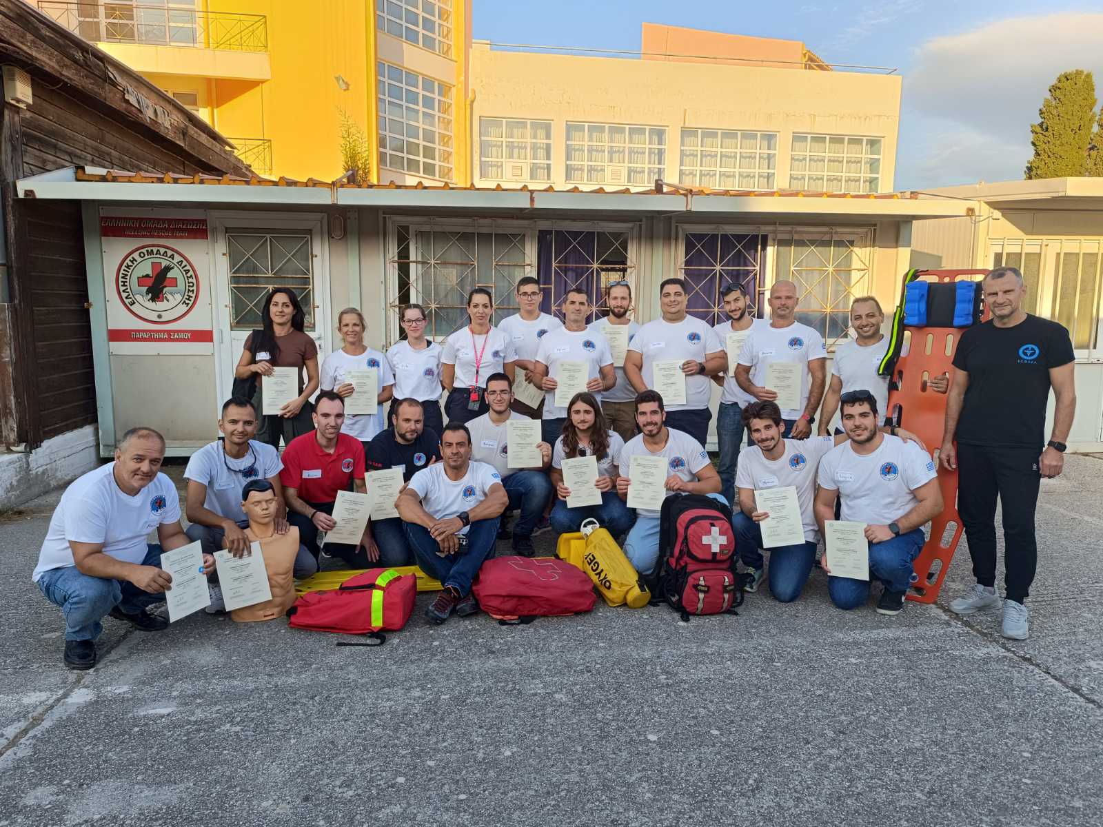 We have been cooperating with the Samos branch of the Hellenic Rescue Team for sixth years now. This time the team members were trained and certified in the Sports on Field Trauma Emergencies (SOFTE) and the Emergency Triage at Sporting Events (EMTRASE) both certified by the European College of Sports Physicians (ECOSEP). Congratulations to everyone and thank you very much for the trust and friendship that unites us. September 2024